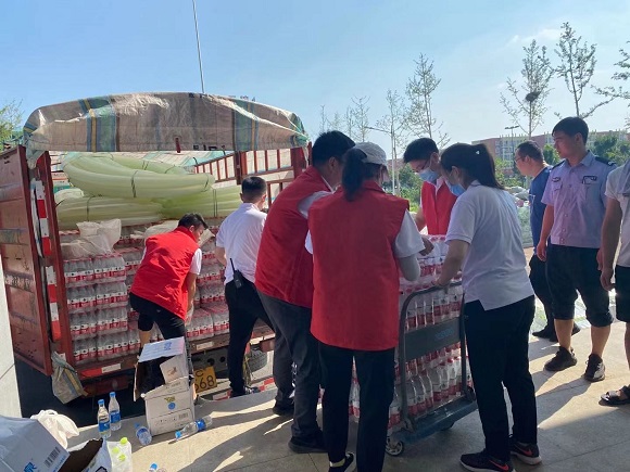 (凱瑞集團支援人員進(jìn)行物資交接并協(xié)助卸運)